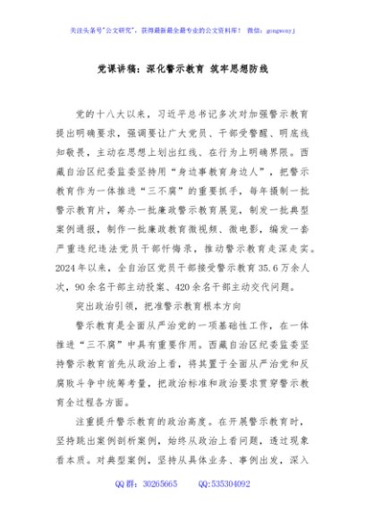 / 党课讲稿:深化警示教育 筑牢思想防线