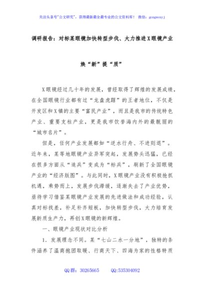 / 调研报告:对标某眼镜加快转型步伐、大力推进X眼镜产业焕“新”提“质”