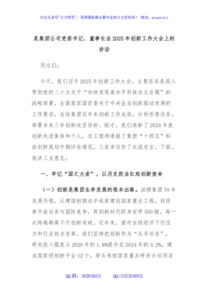 / 某集团公司党委书记、董事长在2025年创新工作大会上的讲话