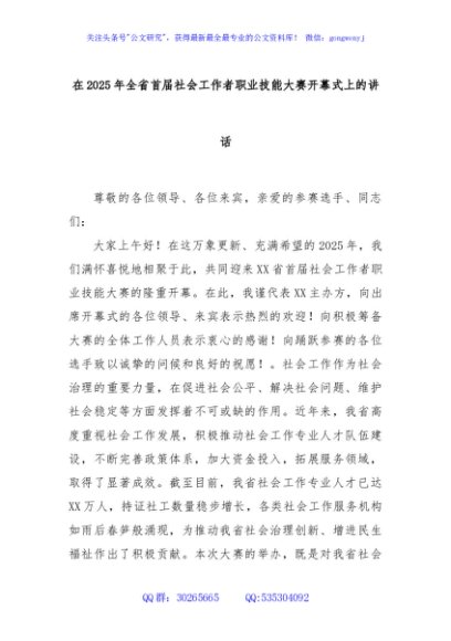 / 在2025年全省首届社会工作者职业技能大赛开幕式上的讲话