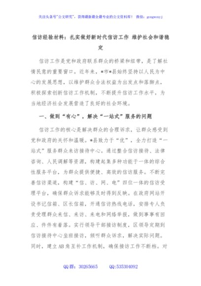 / 信访经验材料:扎实做好新时代信访工作 维护社会和谐稳定