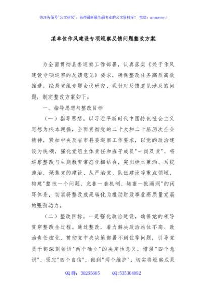 / 某单位作风建设专项巡察反馈问题整改方案