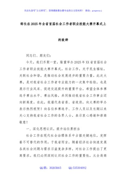 / 部长在2025年全省首届社会工作者职业技能大赛开幕式上的致辞