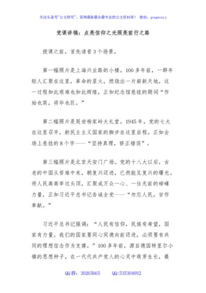 / 党课讲稿:点亮信仰之光照亮前行之路