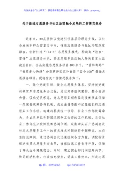 / 关于推进志愿服务与社区治理融合发展的工作情况报告