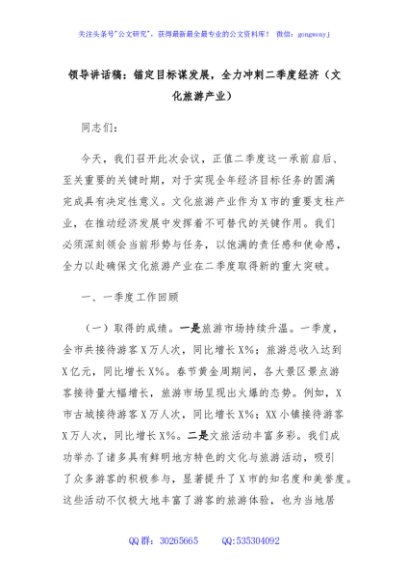 / 领导讲话稿:锚定目标谋发展,全力冲刺二季度经济(文化旅游产业)
