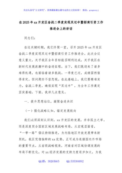 / 在2025年xx开发区奋战二季度实现双过半暨招商引资工作推进会上的讲话
