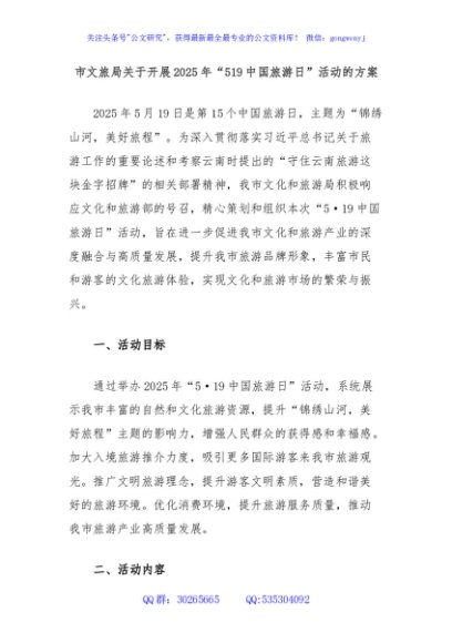 / 市文旅局关于开展2025年“519中国旅游日”活动的方案