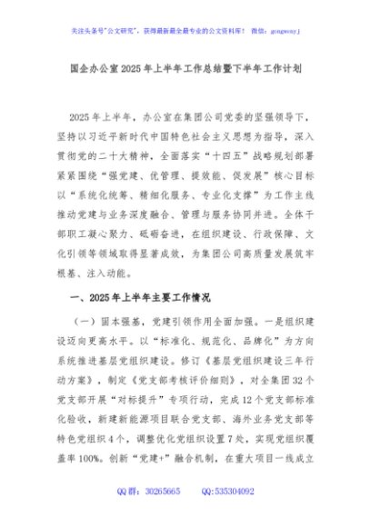 / 国企办公室2025年上半年工作总结暨下半年工作计划