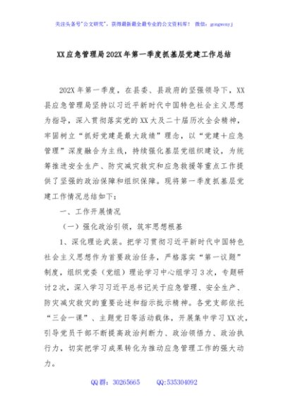 / XX应急管理局202X年第一季度抓基层党建工作总结
