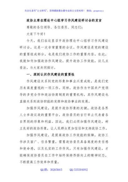/ 政协主席在理论中心组学习作风建设研讨会的发言