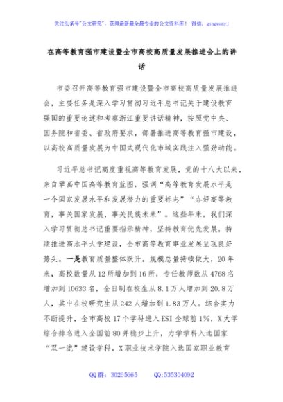 / 在高等教育强市建设暨全市高校高质量发展推进会上的讲话