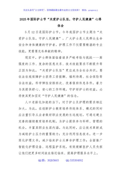 / 2025年国际护士节“关爱护士队伍,守护人民健康”心得体会
