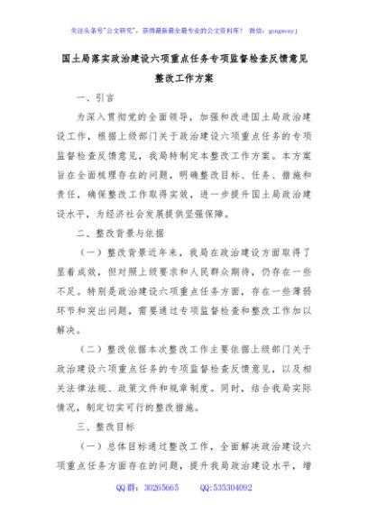 / 国土局落实政治建设六项重点任务专项监督检查反馈意见整改工作方案