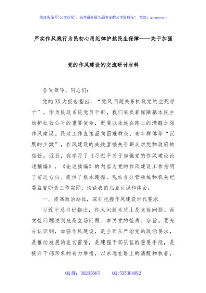 / 严实作风践行为民初心用纪律护航民生保障——关于加强党的作风建设的交流研讨材料