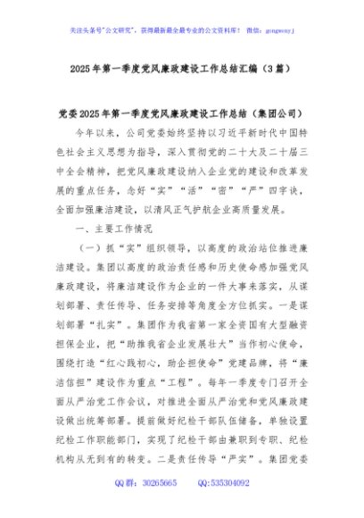 / (3篇)2025年第一季度党风廉政建设工作总结汇编