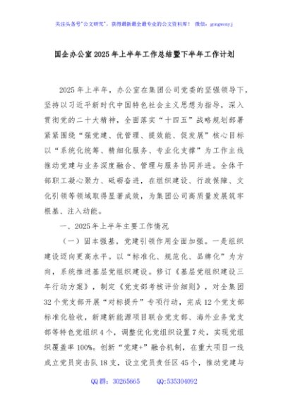 / 国企办公室2025年上半年工作总结暨下半年工作计划