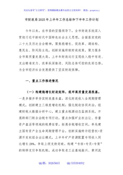 / 市财政局2025年上半年工作总结和下半年工作计划