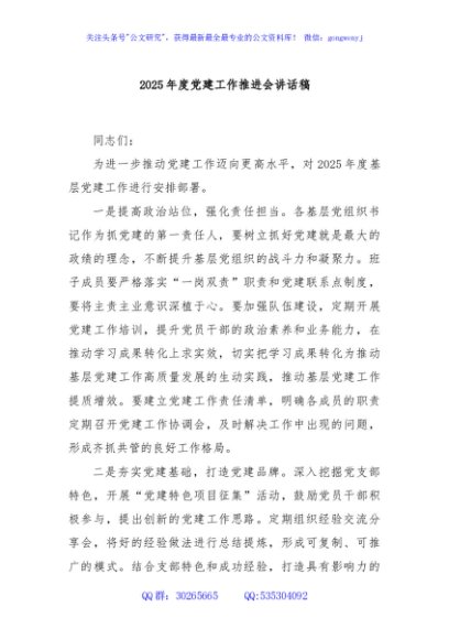 / 2025年度党建工作推进会讲话稿