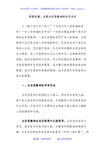 / 党课讲稿:点燃白求恩精神的时代光芒