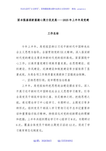 / 固本强基谋新篇凝心聚力促发展——2025年上半年局党建工作总结