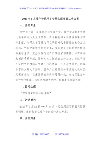 / 2025年6月端午传统节日专题主题党日工作方案