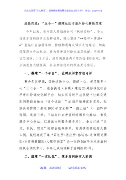 经验交流:“五个一”搭建社区矛盾纠纷化解新渠道