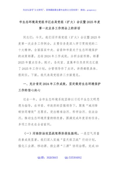 / 市生态环境局党组书记在局党组(扩大)会议暨2025年度第一次业务工作例会上的讲话