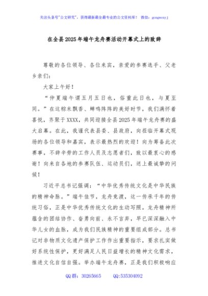 / 在全县2025年端午龙舟赛活动开幕式上的致辞