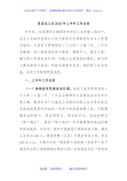 / 某县总工会2025年上半年工作总结