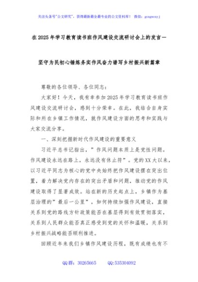 / 在2025年学习教育读书班作风建设交流研讨会上的发言-坚守为民初心锤炼务实作风奋力谱写乡村振兴新篇章