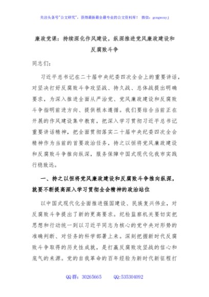 / 廉政党课:持续深化作风建设,纵深推进党风廉政建设和反腐败斗争