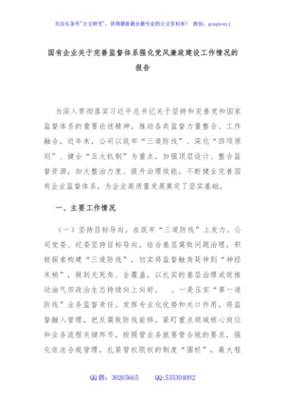 / 国有企业关于完善监督体系强化党风廉政建设工作情况的报告