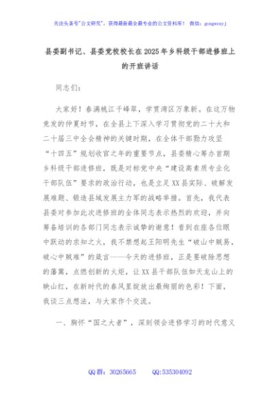 / 县委副书记、县委党校校长在2025年乡科级干部进修班上的开班讲话