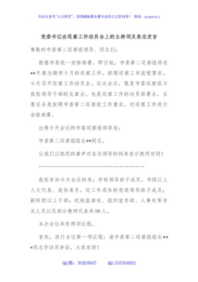 / 党委书记在巡察工作动员会上的主持词及表态发言
