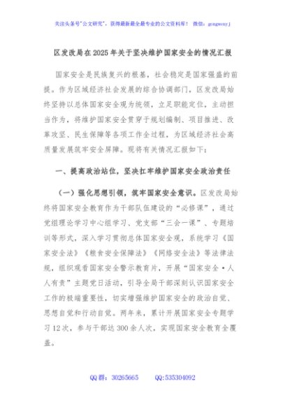 / 区发改局在2025年关于坚决维护国家安全的情况汇报