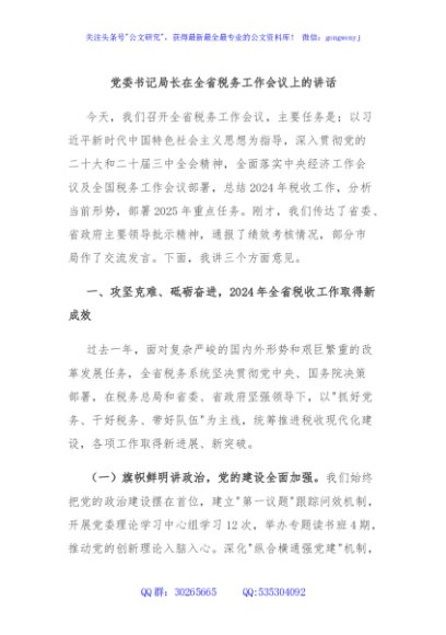 / 党委书记局长在全省税务工作会议上的讲话