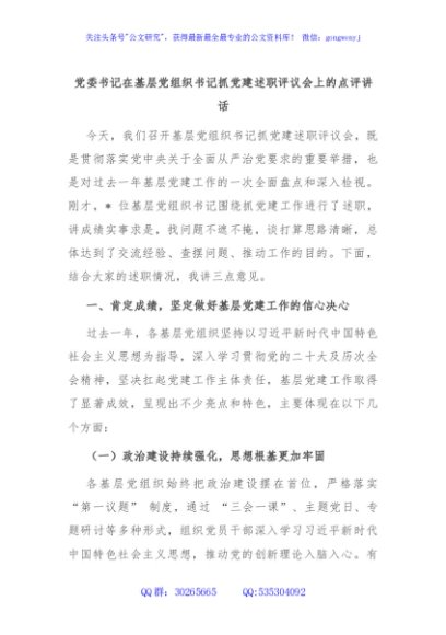 / 党委书记在基层党组织书记抓党建述职评议会上的点评讲话
