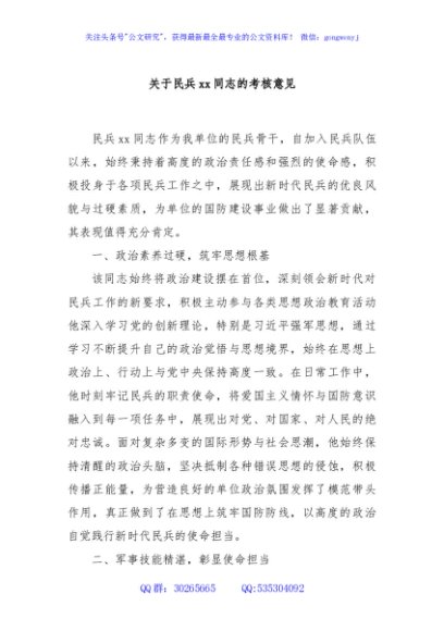 / 关于民兵xx同志的考核意见