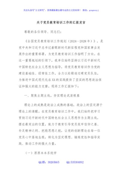 / 关于党员教育培训工作的汇报发言