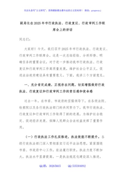 / 副局长在2025年市行政执法、行政复议、行政审判工作联席会上的讲话