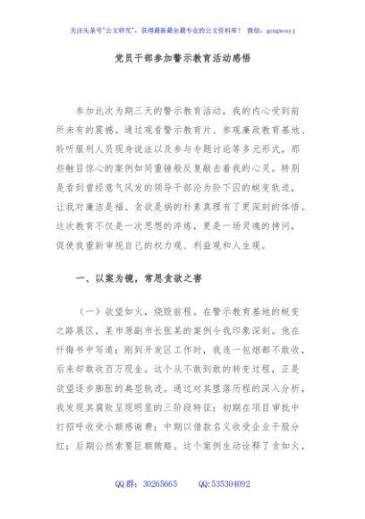 党员干部参加警示教育活动感悟