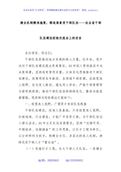 / 健全机制精准施策,锻造高素质干部队伍——在全省干部队伍建设经验交流会上的发言