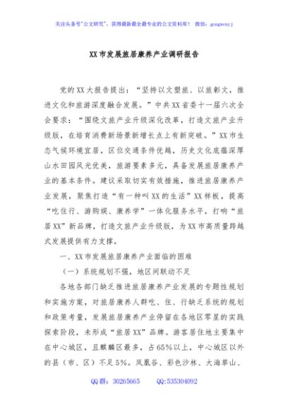 / XX市发展旅居康养产业调研报告