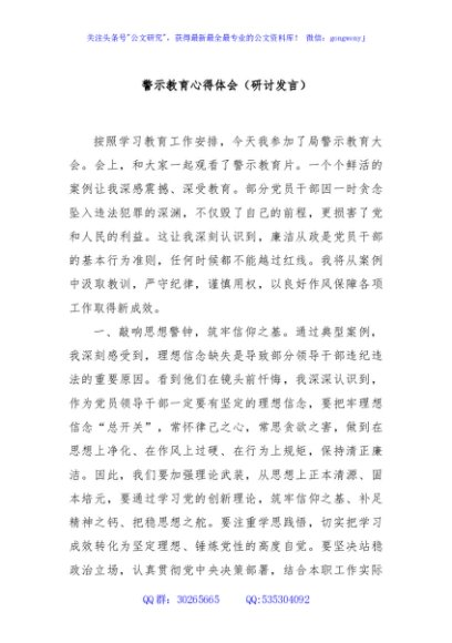 / 警示教育心得体会(研讨发言)