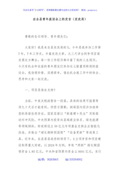 / 在全县青年座谈会上的发言(发改局)