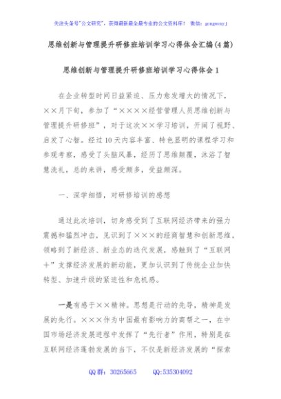 / (4篇)思维创新与管理提升研修班培训学习心得体会汇编