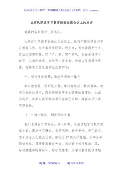 / 在作风建设学习教育经验交流会议上的发言
