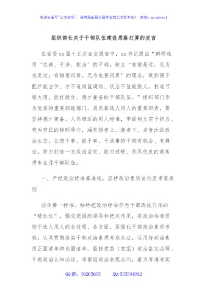 / 组织部长关于干部队伍建设思路打算的发言