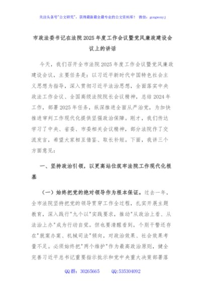 / 市政法委书记在法院2025年度工作会议暨党风廉政建设会议上的讲话